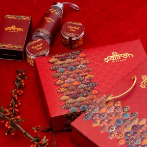 Thiết kế của hộp quà 20/10 Saffron JAHAN & trà hoa tổng hòa nét tinh tế truyền thống và sự huyền bí Ba Tư với họa tiết đèn lồng được trau chuốt tỉ mỉ. Tạo nên một hộp quà tặng sang trọng và đẳng cấp vô cùng.