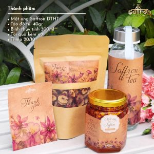 Một set quà tặng 20/10 với bộ tặng phẩm gồm 4 vương dược quý hiếm cho sức khỏe: Saffron – Nhụy hoa nghệ tây, Đông trùng hạ thảo, Táo đỏ, Mật ong hoa rừng. Thực sự là một set quà ý nghĩa thay bạn chăm sóc sức khỏe người thân yêu mỗi ngày. Một set quà quý phù hợp để tặng bà, tặng mẹ, tặng cô giáo, tặng sếp vô cùng!
