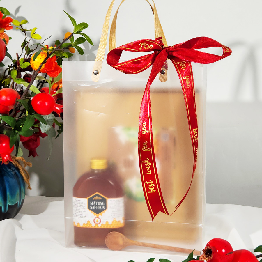 Mật ong saffron là điểm nhấn sang trọng cho set quà. Sự kết hợp giữa mật ong nguyên chất và nhụy hoa nghệ tây tạo nên vị ngọt thanh, màu vàng rực rỡ và lợi ích sức khỏe vượt trội.